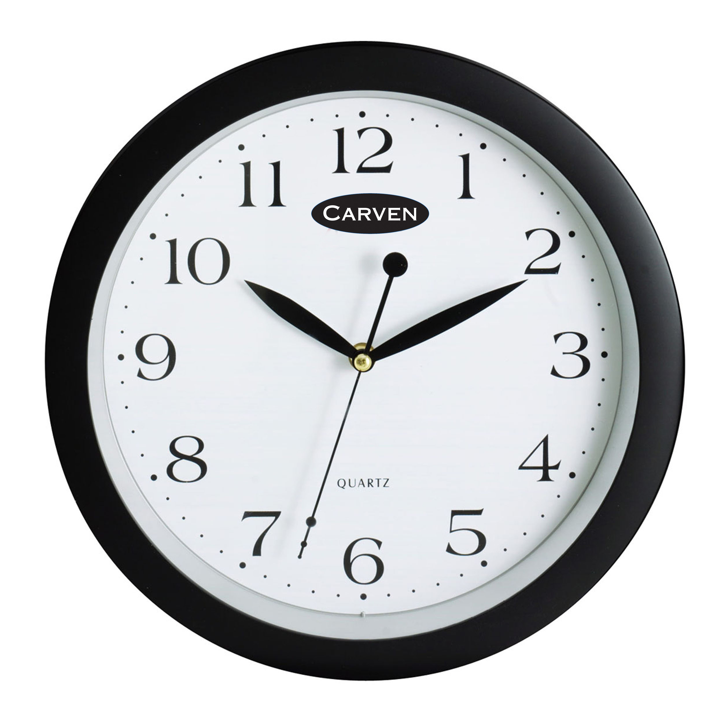 Round plastic wall clock with glass face.