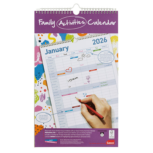 The Sasco Family Activity Calendar is the perfect tool to help mums organise! Individual columns for each family member help you kee