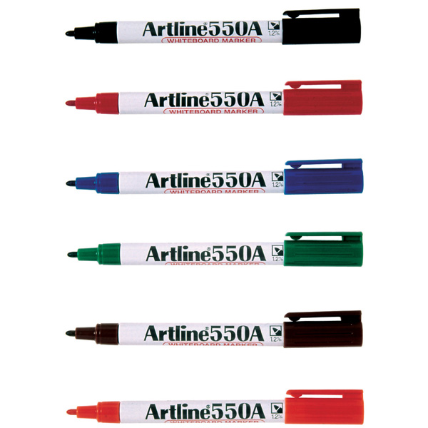 The artline 550A contains dry erase ink - ideal for use with enamel porcelain or melamine surfaced boards. The alcohol based pigment ink has a non offensive low odour and provides dense bold colours