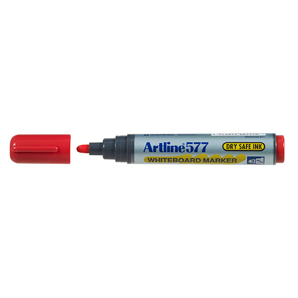 The unique dry safe ink formula allows the cap to be left off for up to 48 hours without drying out (In controlled tests). The alcohol based pigment ink in the artline 577 has a non offensive low odour and provides dense bold colours