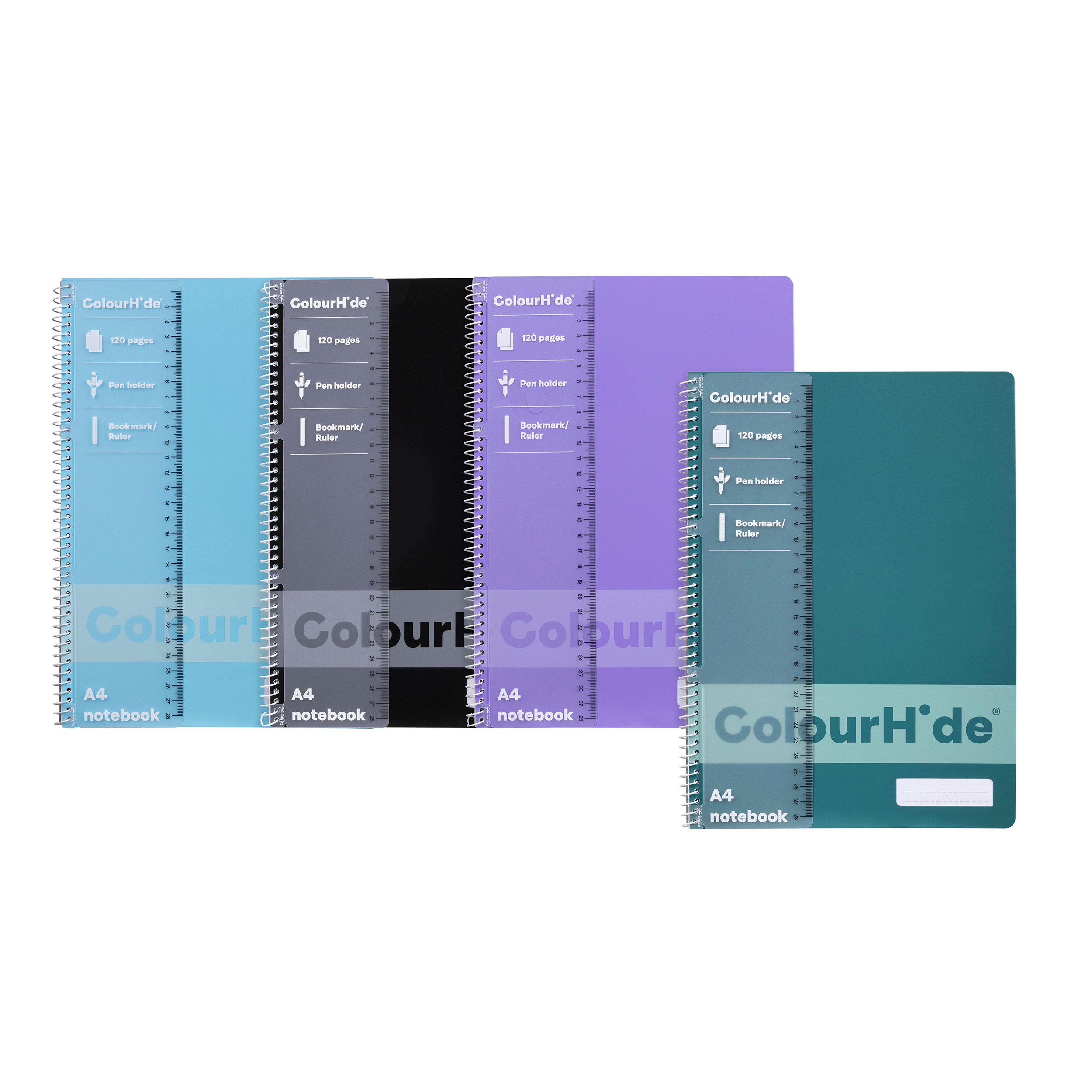 A4 in size, with 120 nice, thick and easy to rip out pages. Pack of 4 assorted colours