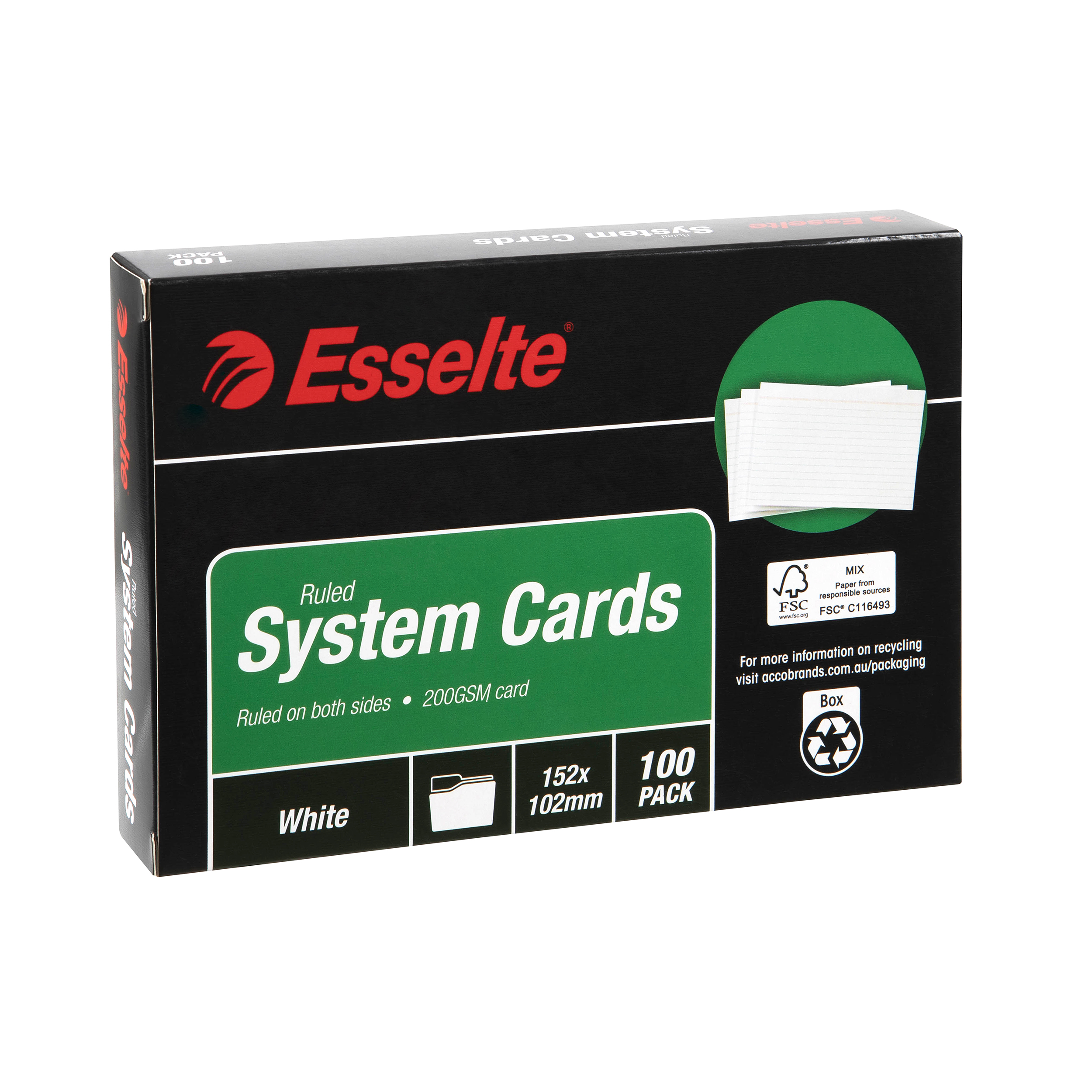 Esselte system cards are ideal for use in card boxes or on their own. They are ruled on both sides and made from 200Gsm board. Perfect system cards to compliment the esselte card file boxes.