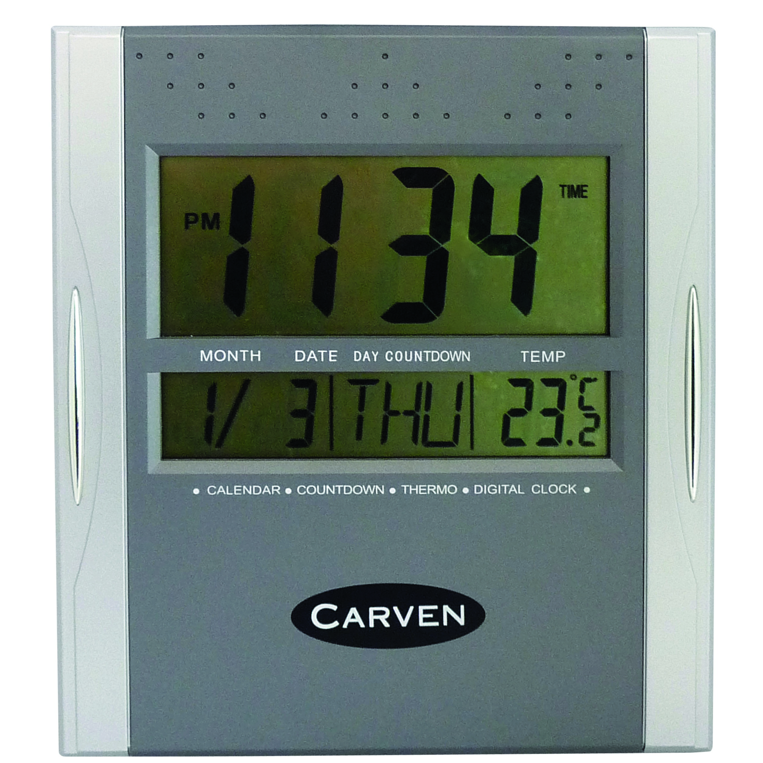 • Features a digital display of time (12 or 24 hours)
