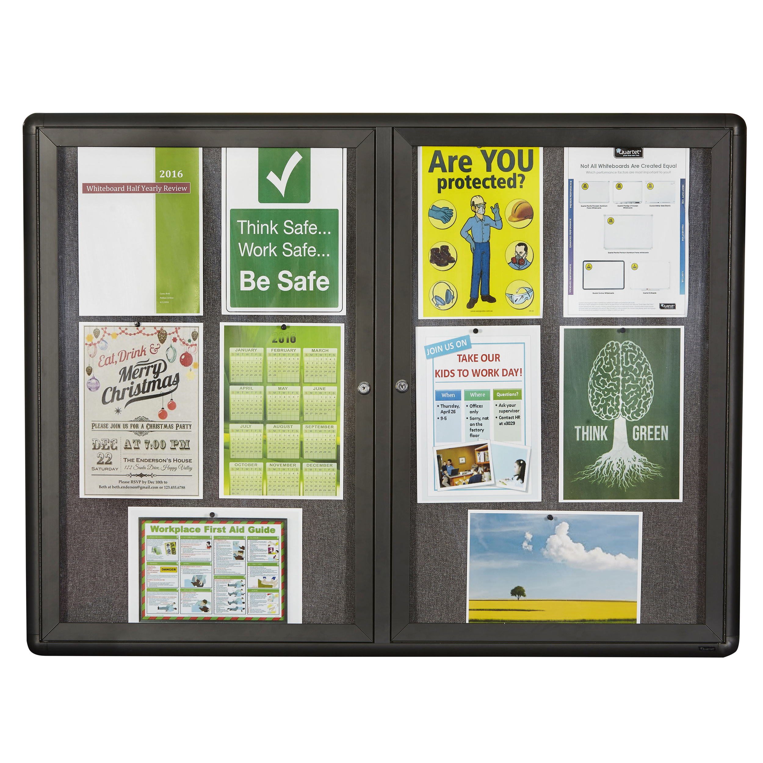 Extend the life of your signs by hanging them inside quartet enclosed bulletin boards.