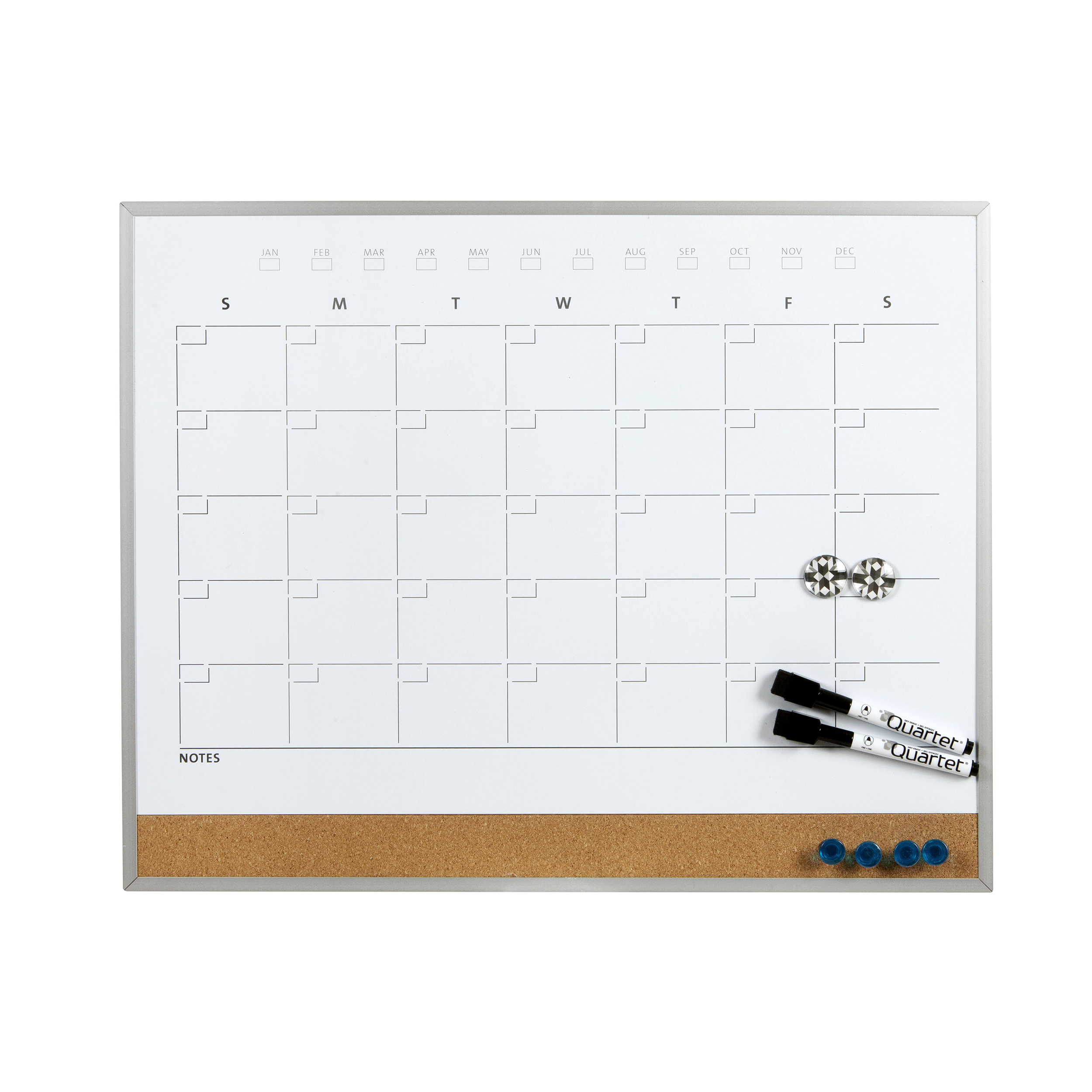 • 3-In-1 board features a dry-erase calendar, magnetic surface and cork bulletin board strip along the bottom to keep your monthly schedule on track