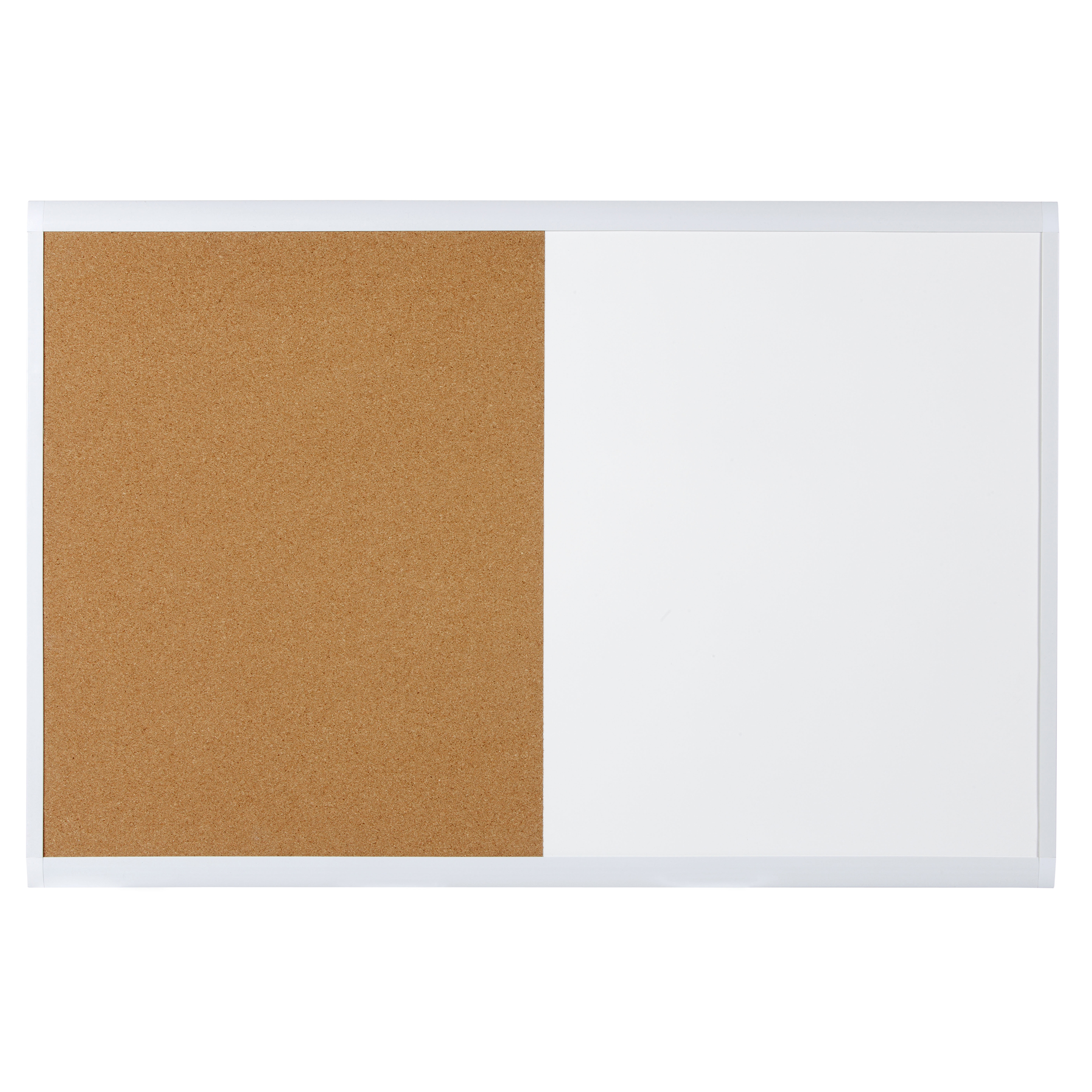 Keep ahead of events with this versatile magnetic dry erase and cork combination board.