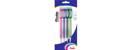 Economical mechanical pencil with ridged finger grips for added comfort and control. comes with 0.5mm lead. includes an eraser. comes in pack of 4 hangsell assorted colours black, blue, red and green. uses pde-1 eraser refill.